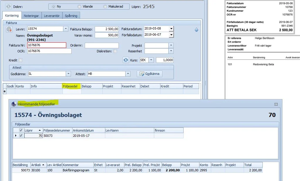 Koppling inkommande följesedel, underlättar arbetet med logistiken - Nyhet 2019..!